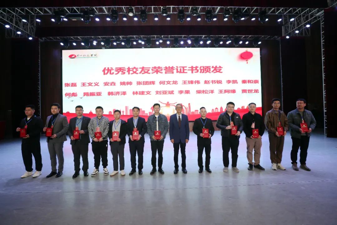 胡大白董事长为校友会副会长颁发聘书,王文亮、张光辉为优秀校友代表颁发证书。2008级工商管理专业程东东回忆了在母校的求学岁月。他希望广大校友牢记母校教诲、拼搏实干,用青春和汗水建设伟大祖国、为人民服务,同时依托校友会这一平台继续团结一心、共同努力,积极为母校和经济社会发展作出应有的贡献。2011级工商管理专业茹静宜结合自己在母校求学以及自己创业的经历表示,每一位校友都要感恩母校,无论身在何处都应以不同形式、竭尽所能回馈母校和祖国。在校友会这个温暖的大家庭里,广大校友要更加团结,凝心聚力,在祖国大地上续写更多“春天的故事 ”,为学弟学妹作榜样,为母校的发展贡献自己的力量,为校友会的蓬勃发展努力奋斗。2009级工商管理专业熊桂瑶在发言中表示,见证了母校经历的无数风雨和坎坷,但始终坚守着教育的初心和使命,培养了一批又一批优秀的学子。她相信在母校的带领下,校友会的推动下,和校友们携手共进,为母校辉煌的明天继续增光添彩。