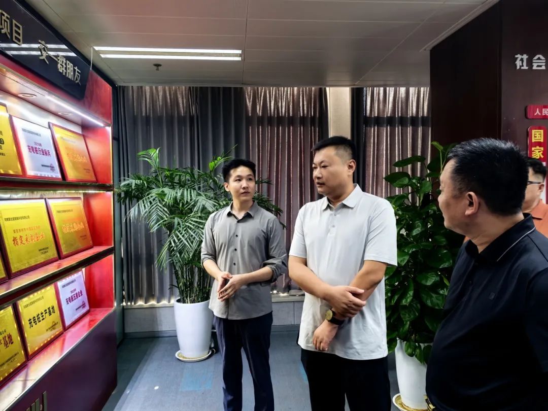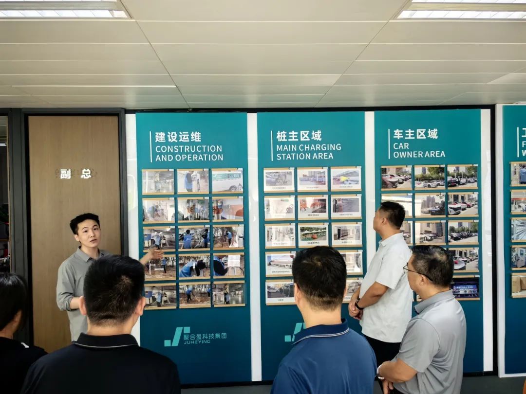 公司董事长王心庄校友热情接待了走访组一行,在聚合盈公司相关人员的接待下,先后参观了公司的智能党建园区、办公区域、产品展示区以及专利技术展示区。公司解说员详细介绍了企业发展历程、业务开展现状、产品覆盖范围以及未来战略规划。参观过程中,大家饶有兴致地观摩了各类规格的充电设备,并深入了解了相关技术的最新发展趋势。