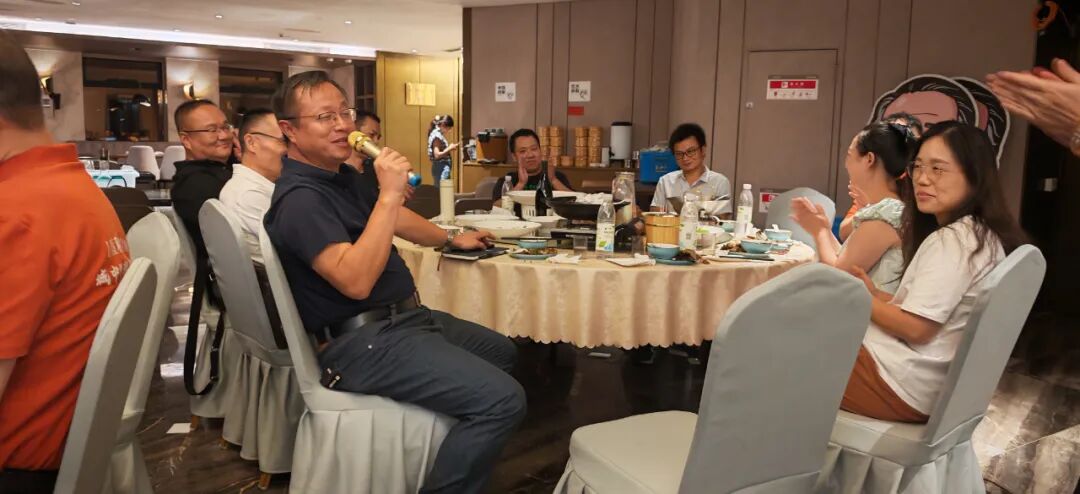 夜幕降临,校友们移步交流晚宴,在轻松愉快的氛围中进行学习总结与情感联结。每位参会者结合当日所学,分享感悟与规划:有的校友计划将《会计七原则》引入公司,有的则希望在公司经营上引入AI在细分领域的应用。