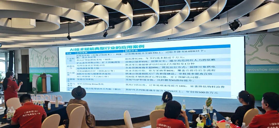 午后,北京大学肖艺能博士带来主题演讲《前沿人工智能的发展现状和趋势》,为校友们打开了科技视野。肖博士从生成式AI、自动驾驶、脑机接口等前沿领域切入,深入剖析了AI技术在产业升级中的应用场景:从制造业的智能质检、服务业的个性化推荐,到医疗领域的疾病预测,AI正从“辅助工具”向“核心生产力”加速转变。