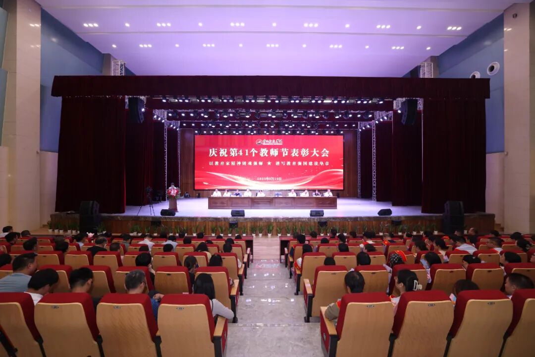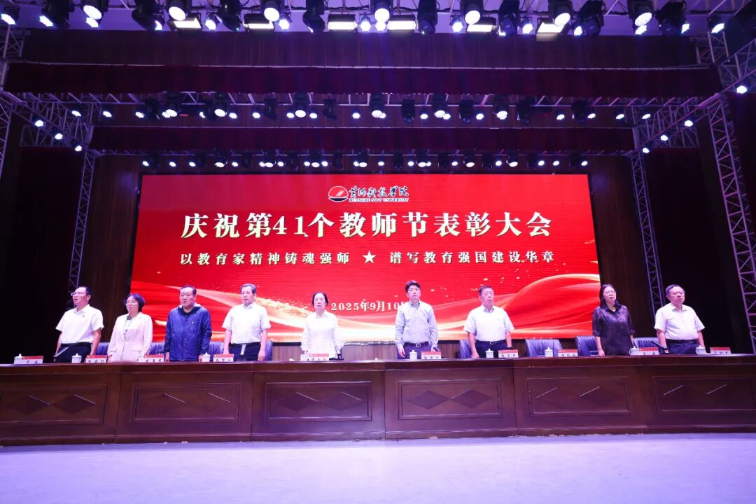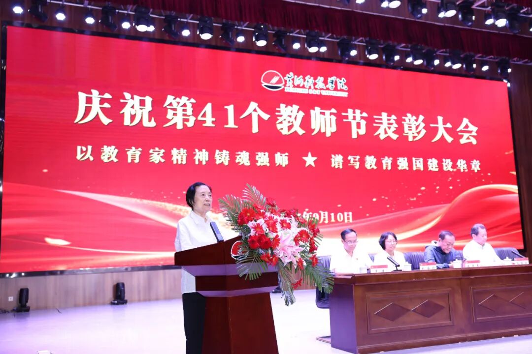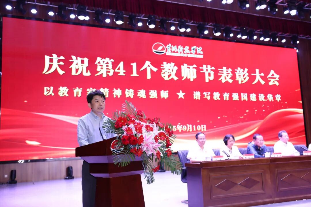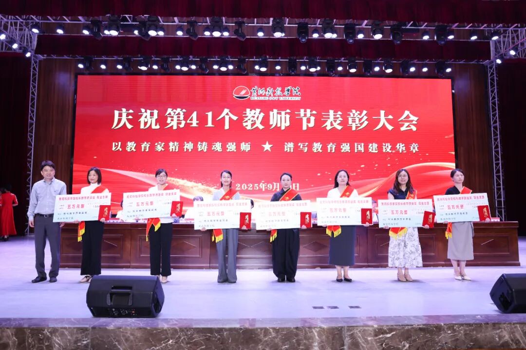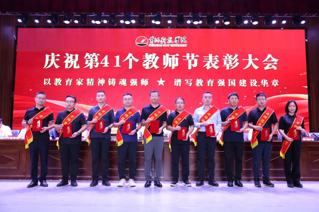 弦歌不辍,薪火相传;桃李芬芳,感念师恩。为向全体教师致以诚挚的节日问候,凝聚推动学校高质量发展的向心力,表彰教育教学中的先进典型,大力弘扬尊师重教的良好风尚,进一步增强教师的职业荣誉感与使命担当,激励全体教职员工传承并发扬黄科大精神,在建设一流应用科技大学的征程中奋勇争先。9 月 10 日,bat365在线平台在艺术中心隆重举办庆祝第41个教师节表彰大会,以庄重而温情的仪式,礼赞躬耕教坛的师者荣光。