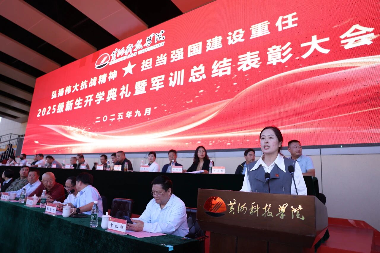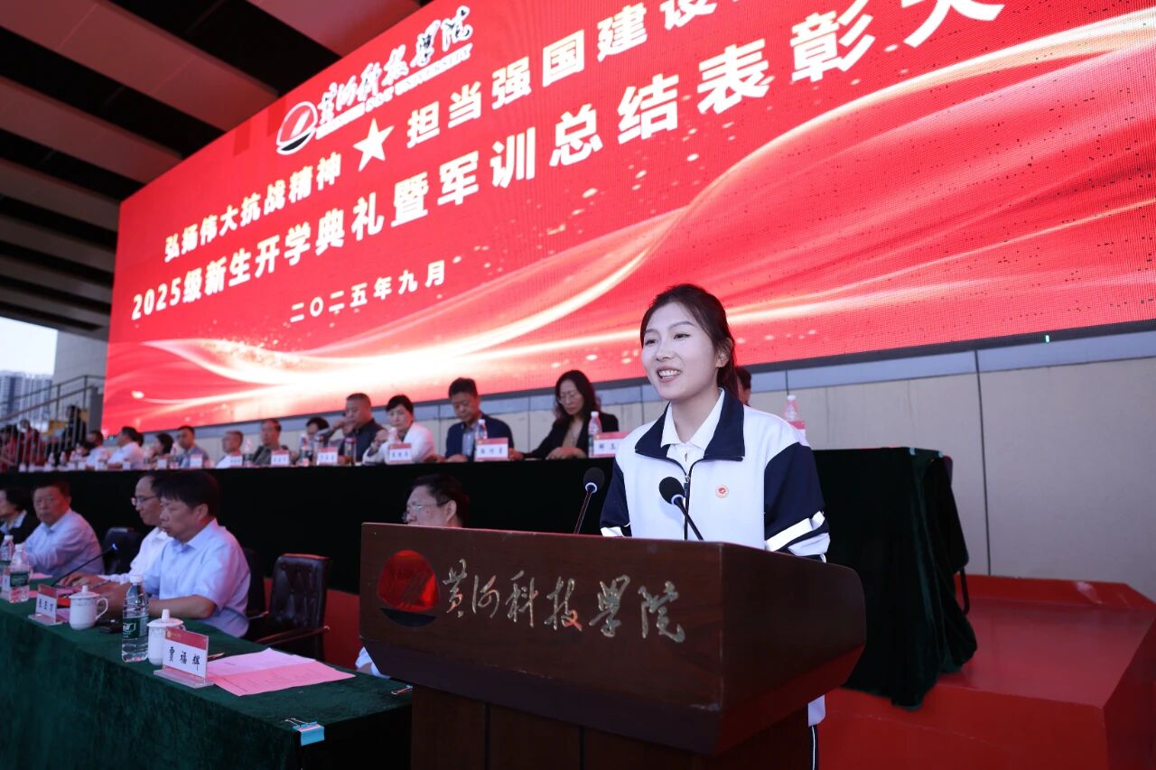 丹桂飘香迎新生,奋楫笃行启新程。9月20日,我校2025级新生开学典礼暨军训总结表彰大会在南校区西田径场举行。全体2025 级新生以饱满的精神面貌,开启了在黄科大的求学新征程。董事长、党委副书记胡大白,二七区区委常委、区人武部上校部长李长鑫,执行董事、校长杨保成,董事会专家咨询委员会主任赵卫东等领导,各学部(院)分党委书记及部(院)长、相关职能部门负责人与2025级普招本专科新生共同出席大会,大会由学生中心主任张丕万主持。