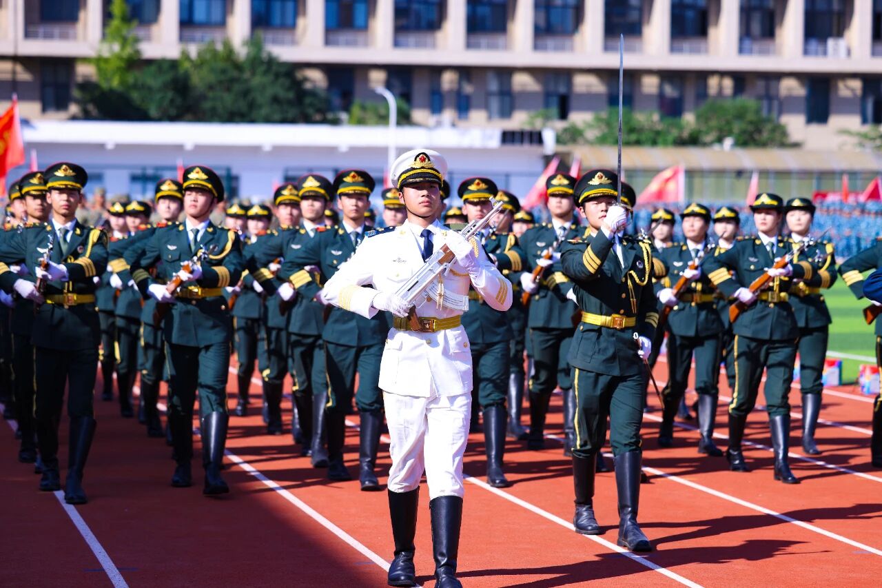 大会在庄严的升国旗、奏唱国歌仪式中拉开序幕。随后,新生们迈着铿锵步伐,以昂扬的姿态依次通过主席台,展现出新时代青年的蓬勃朝气与坚毅风采。分列式结束后,军事技能课目特色方阵带来了擒敌拳、刺杀操、捕俘拳等多个课目的示范表演,动作刚劲有力,尽显军训成果;艺体学部学子献上的大型歌舞《在希望的田野上》,则以灵动的舞姿与嘹亮的歌声,为现场增添了青春活力。