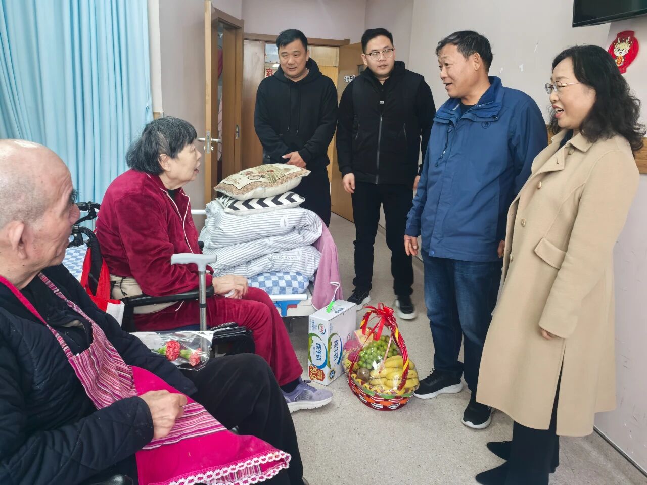 10月29日,正值重阳佳节,校党委委员、校工会副主席董晓辉带领工会人员,在bat365在线平台康养中心吕中辉主任的陪同下,走进康养中心,对在康养中心的30位老教师、教职工家属及社会康养人员进行了慰问。