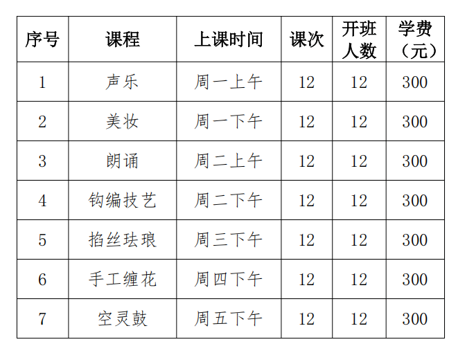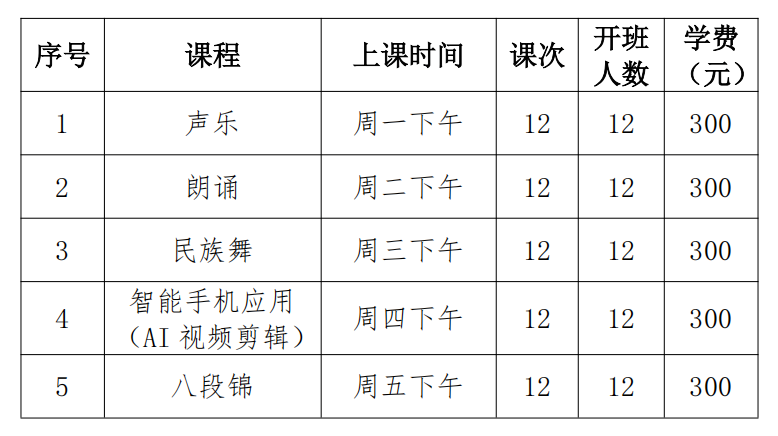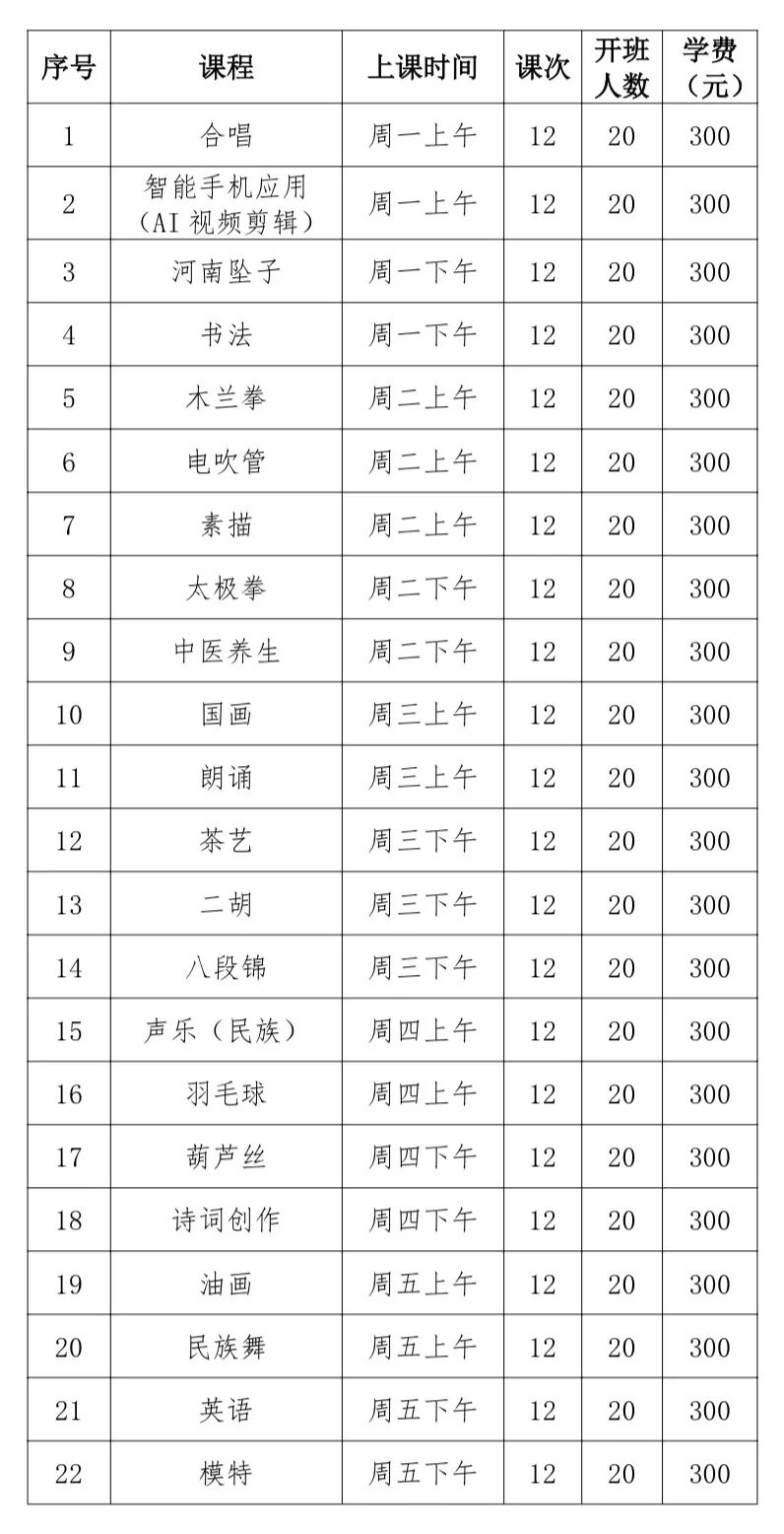 (一)报名前请根据本人健康状况、学习基础、兴趣爱好等选择课程班级,在上课时间不冲突的情况下,不限制报名课程门数。
